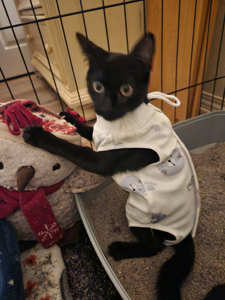 Della (named after my Aunt) is sister to Daisy and Denise. Della and Denise were adopted together and live in Lake Forest. This is her after her spay surgery