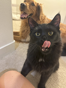 Mary is one of Millie's sisters who was adopted here locally to a couple in Mission Viejo. She has 3 cat siblings and a new human baby too