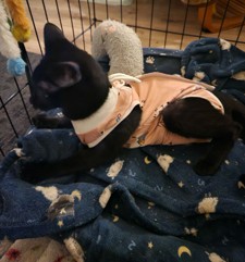 Della (named after my Aunt) is sister to Daisy and Denise. Della and Denise were adopted together and live in Lake Forest. This is her after her spay surgery